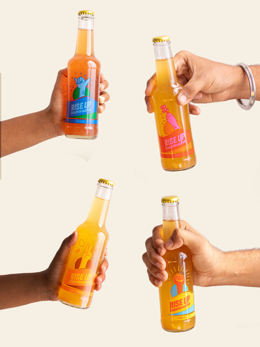 Rise Up is unwaveringly traditionally fermented – meaning there is no processing or pasteurisation and that our brewing process ensures the maximum amount of raw, living bacteria present. Adding a bottle of Rise Up Kombucha to your day will dramatically increase the health and diversity of your microbiome, and over time and consumption ensure that your digestion is efficient, ease and effective.